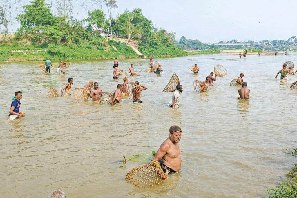 গোমতীতে শুরু হয়েছে ঐতিহ্যবাহী পলো উৎসব, পলো হাতে মাছ শিকারীদের ভিড়