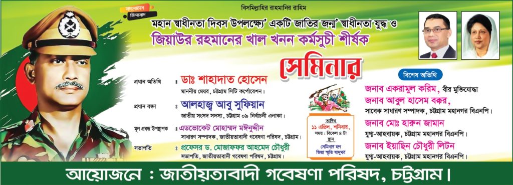একটি জাতির জন্ম’ স্বাধীনতা যুদ্ধ ও জিয়াউর রহমানের খাল খনন শীর্ষক সেমিনার আজ এপ্রিল ১১, ২০২৬ বিস্তারিত